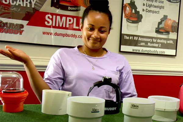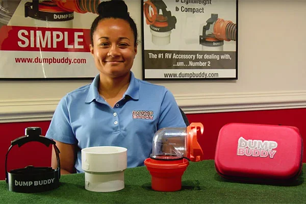 Dump Buddy - RV Waste Management Device, reduces accidental spills during black and grey tank dumping. We have all been there. It is that one part of an RV trip we least look forward to but is extremely important to do.